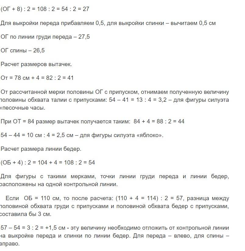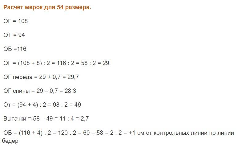 При расчете показателей на изделия стоит помнить, что если мастера для размера s или m прибавляют к половине обхвата груди 0,5 сантиметра, то для полной фигуры нужно прибавлять 0,7-1 сантиметр в зависимости от точных данных