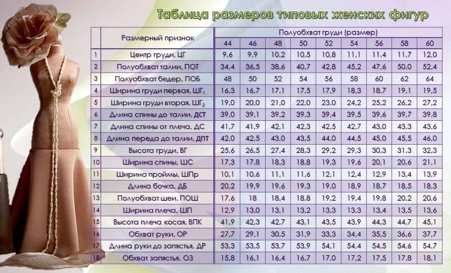 Чтобы не ошибиться в мерках переда, запаха, спинки, плеча и прочего, следует воспользоваться специальной таблицей ниже. Он содержит данные с точностью до сантиметра, что подходит для формирования платья, жакета, свитера или даже половинки.