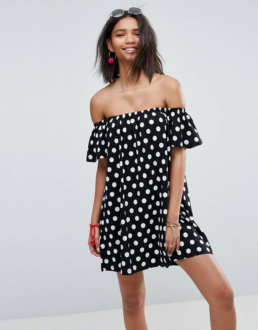 Винтажный образ получится, если носить с пышной юбкой короткую футболку с открытыми плечами. Футболка называется «бардоткой» из-за Бриджит Бардо. Актриса впервые надела вещь в одной из своих кинолент.