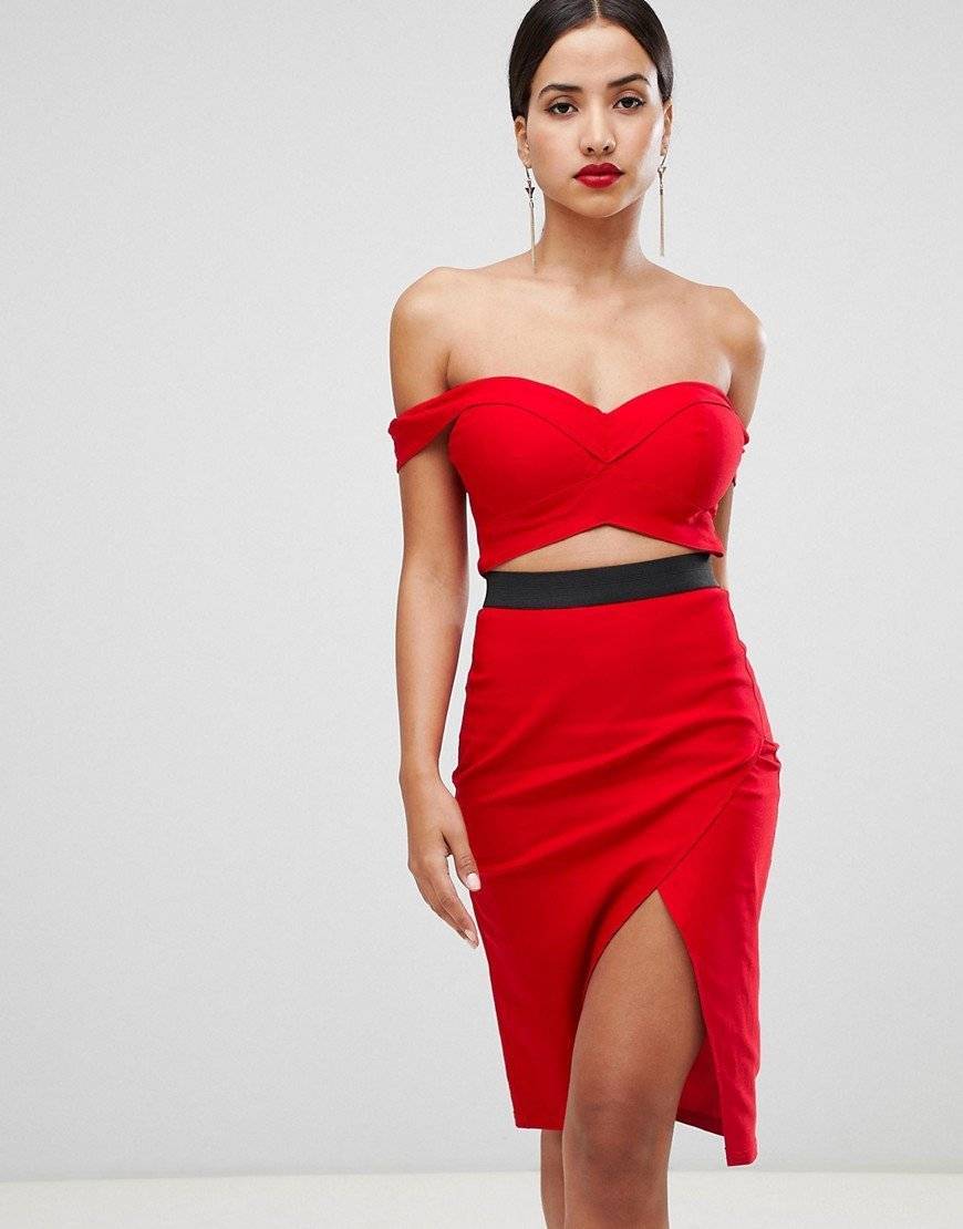 Такой цвет выглядит очень ярко, позволяя создавать чувственные образы. Красное платье с оголенными плечами подойдет очень смелым и уверенным в себе девушкам