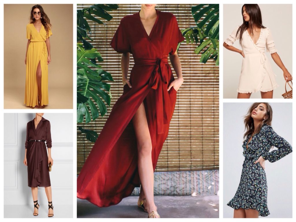 Платье с запахом идеально подчеркивает линию талии с помощью пояса или броши, которые закрепляют тот самый запах. А косые линии, создающие запах, зрительно вытягивают силуэт.