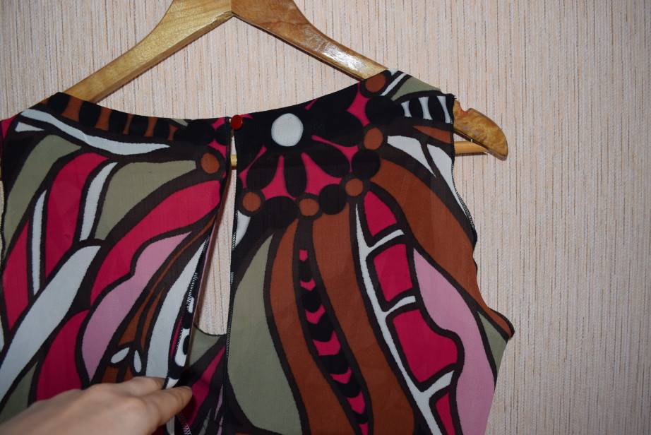Приступаем к обработке выреза горловины с помощью косой бейки. Вырезать её можно из ткани или приобрести готовую в швейном магазине.