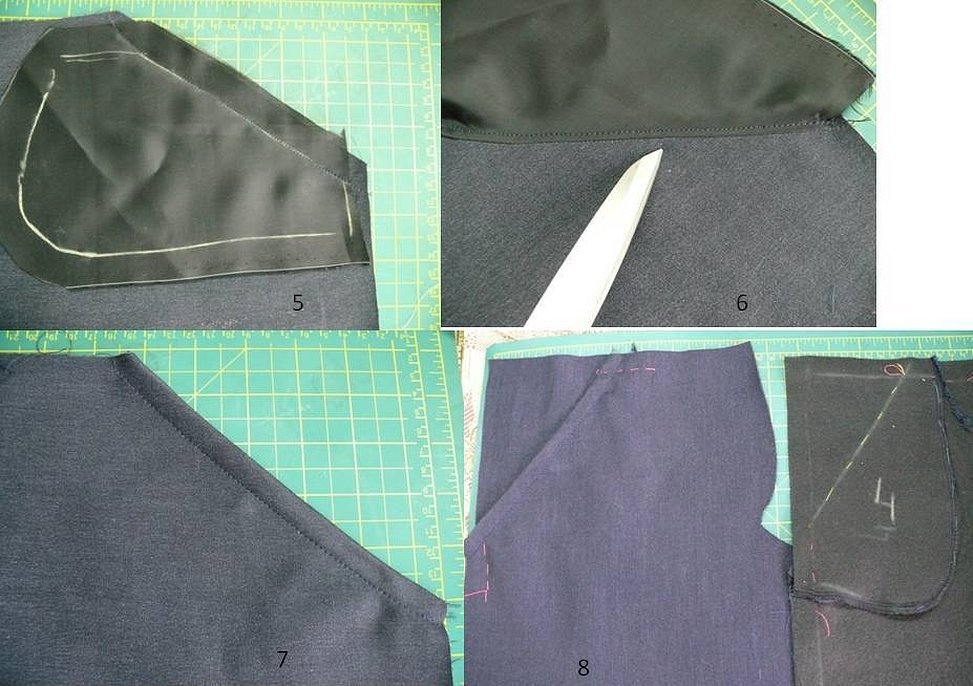 Теперь нам необходимо сшить обе детали по линии вытачки и отутюжить: