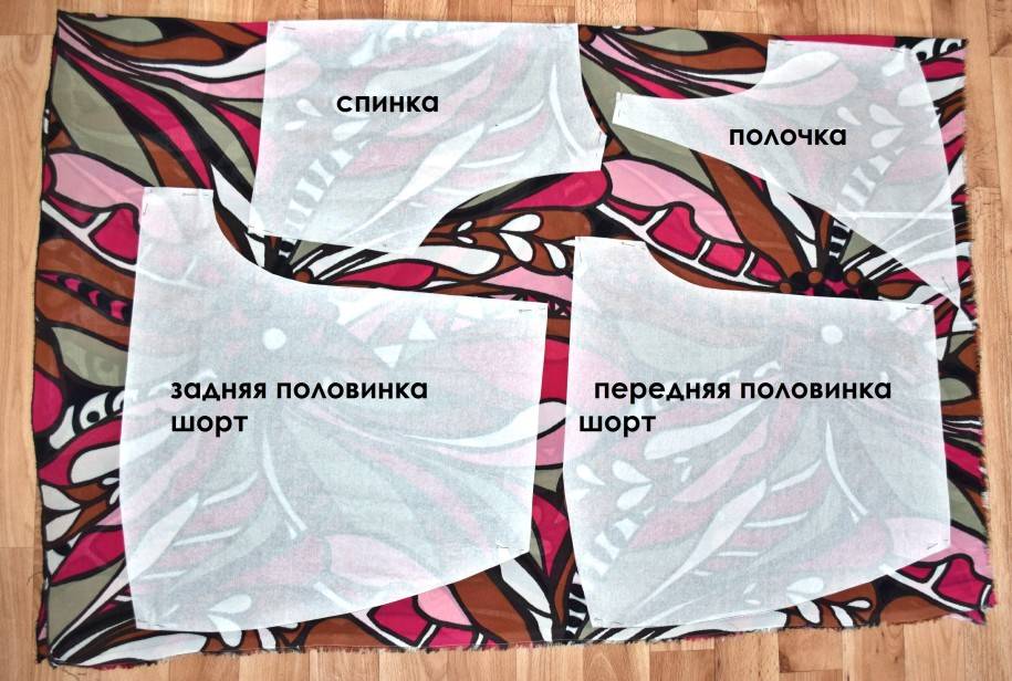 - Если заготовка выполнялась на бумажном носителе, её следует бережно перенести на ткань, приготовленную для пошива шортов.