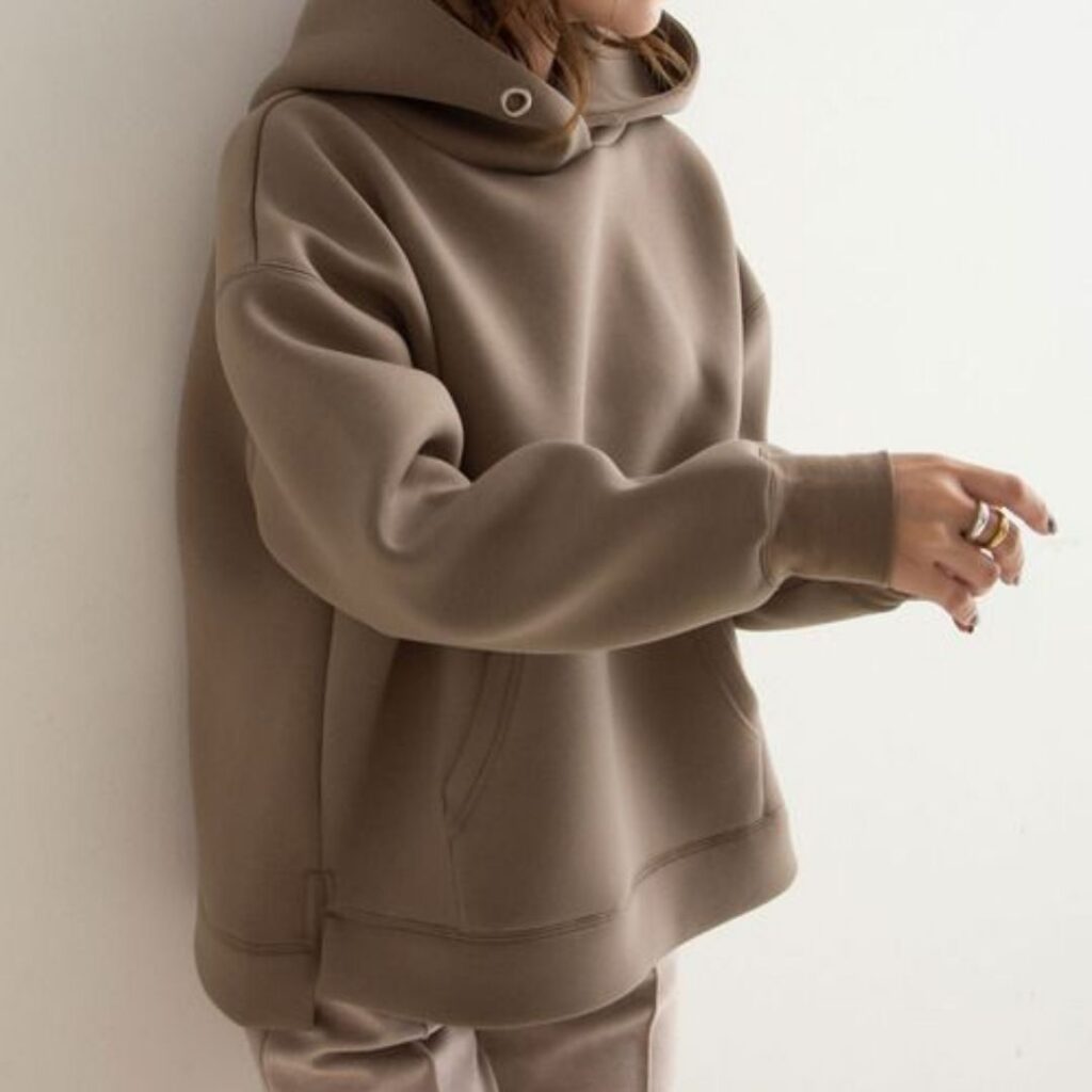 Хотя женские толстовки представлены в объемных оверсайз вариациях, стилисты рекомендуют подобрать к ним крутую кожаную куртку, свободное по крою пальто, стеганую куртку, пуховик миди, либо тренчкот милитари.