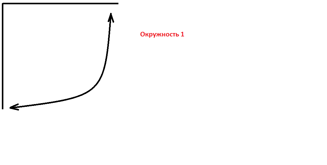 - На разложенном бумажном листе от угла вниз отложите полученный результат, также отложите в другую сторону. Соедините точки дугообразной линией — это будет окружность 1.