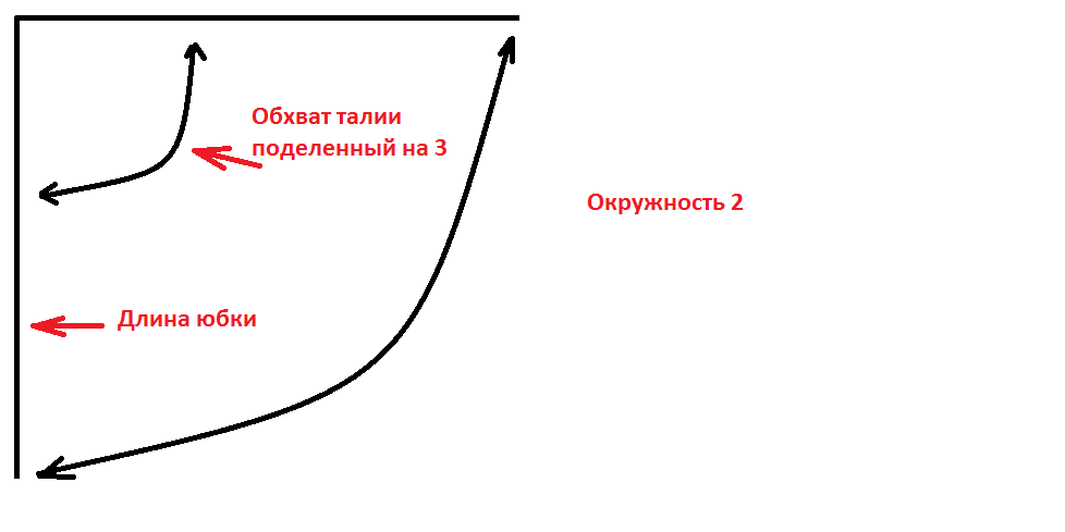 Важно! При чертеже второго радиуса от общей длины юбки необходимо вычесть длину кокетки