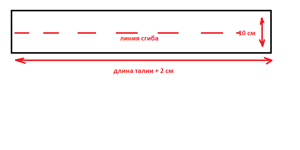 Длина полосы для пояса будет равна длине талии, используемая для выкройки, плюс еще 5 см.