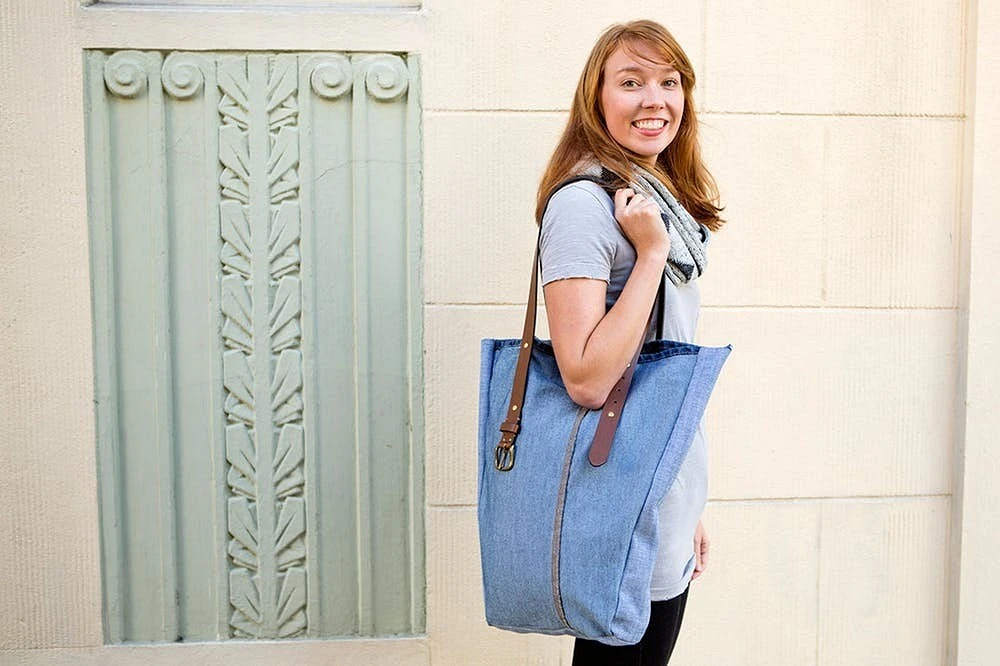 Выносливый шоппер удобно использовать и легко постирать. Ручки можно сделать из прошитых кусков джинсового материала, с плотной подкладкой внутри, или толстой кожи.