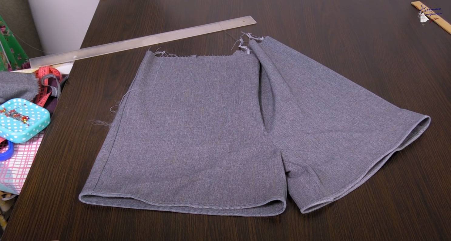 - Пришейте боковые швы. С прижатыми краями прокладывайте прямые швы по боковым сторонам юбки-шорт. Используйте соответствующую нитку и стежки, чтобы создать прочные и аккуратные швы.