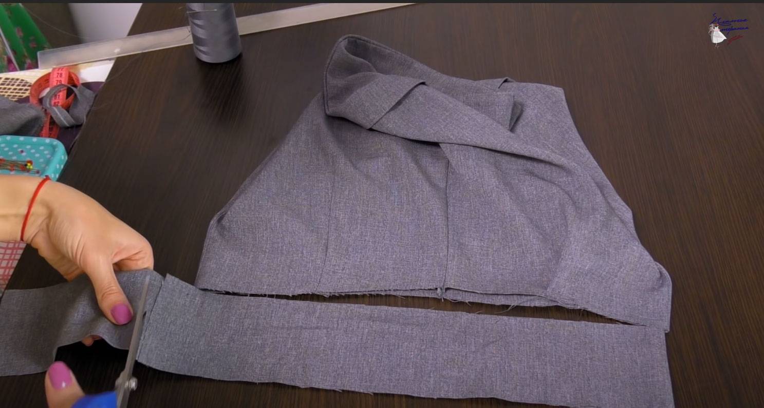 Если выбран вариант, который должен сидеть не на талии, тогда верхняя часть срезается на семь сантиметров.
