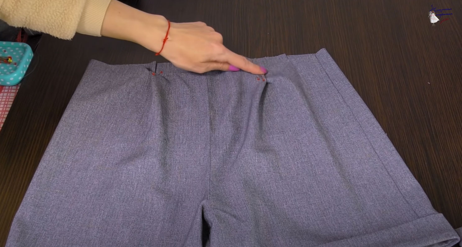 Последний шаг! Драпируем (делаем складки) наши шорты и прошиваем по линии сгиба: