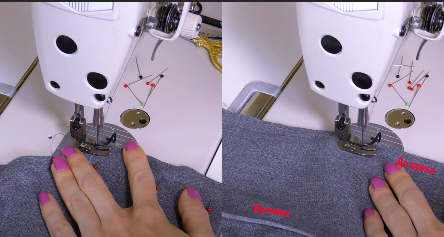 Должно получится как на фото. Заведомо рассчитайте чтобы вместилось две штанины.
