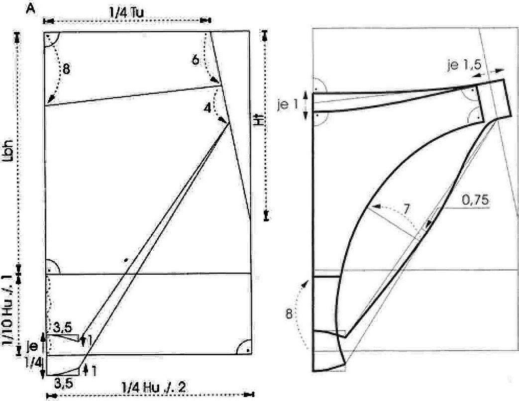 - На первом рисунке дана обычная выкройка слипов, на втором приведен пример моделирования в простейшие высокие танга с наполовину закрытыми ягодицами.