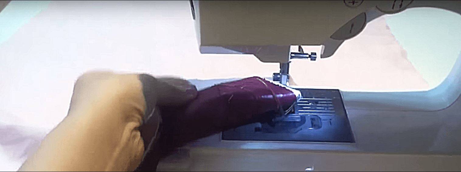 - Конечным этапом будет сшивание всех элементов, поэтому требуется швейная машинка. Покрыть швы можно специальным клеящим средством, которое в настоящее время часто используется в швейном деле.
