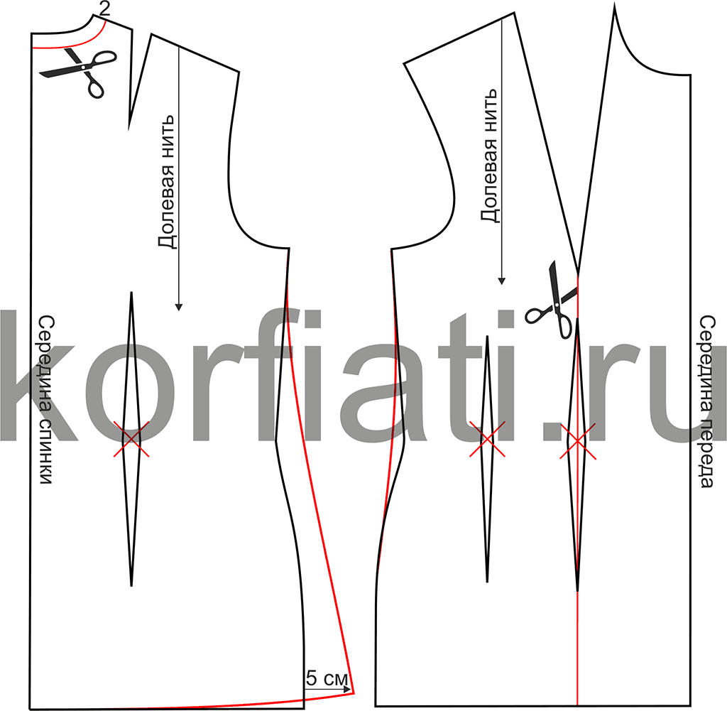 Для выкройки спинки применяют желаемую длину готового изделия, а также ширину плеч, полуобхват талии. Спинку можно сшить как из одной сплошной детали, так и из двух. Для этого выкройка по центру вертикально делится на две части. Не стоит упускать вспомогательные сантиметры.