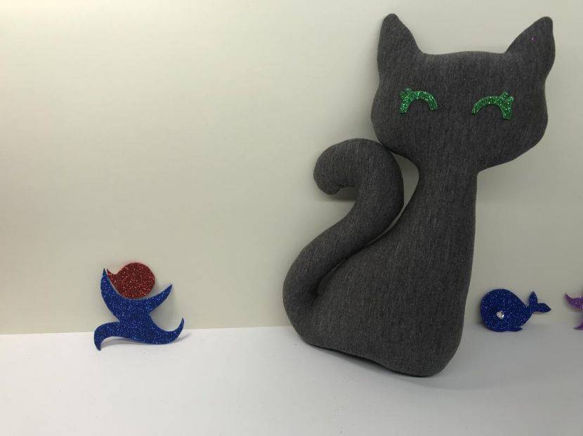 - для начала рисуем кошечку на бумаге, затем прикладываем заготовку к ткани и делаем выкройку передней и задней части;