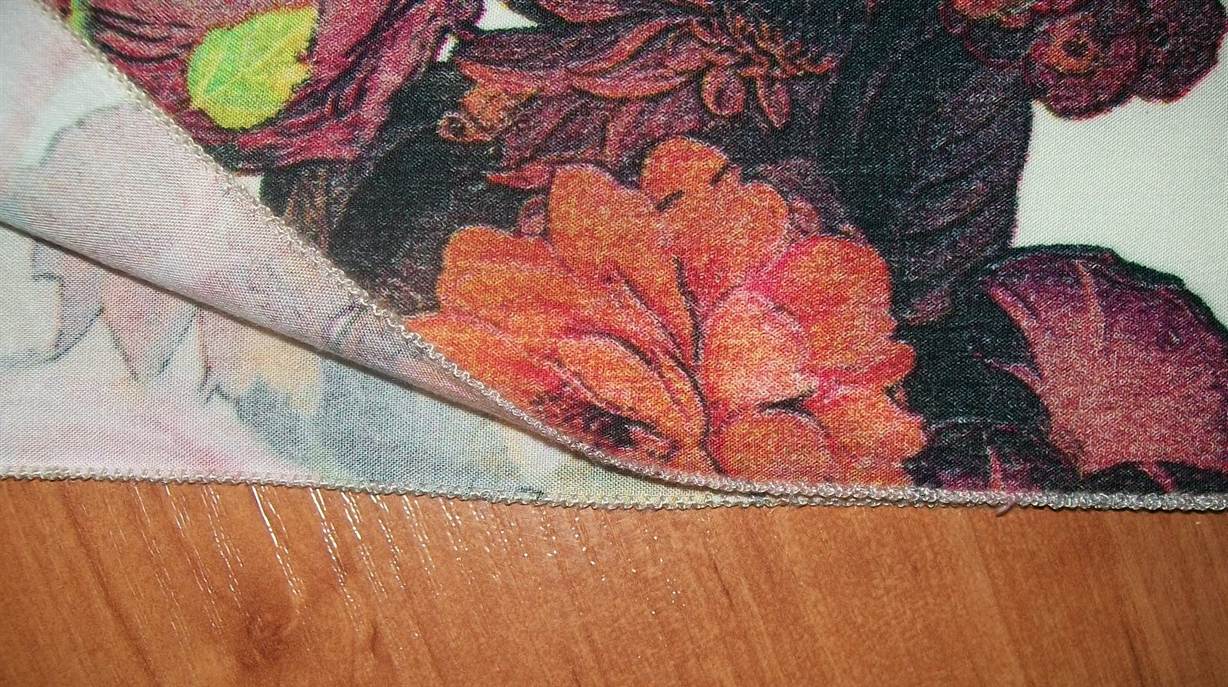 - На первом этапе вы складываете шифон «лицом» внутрь, а затем – повторно пополам.
