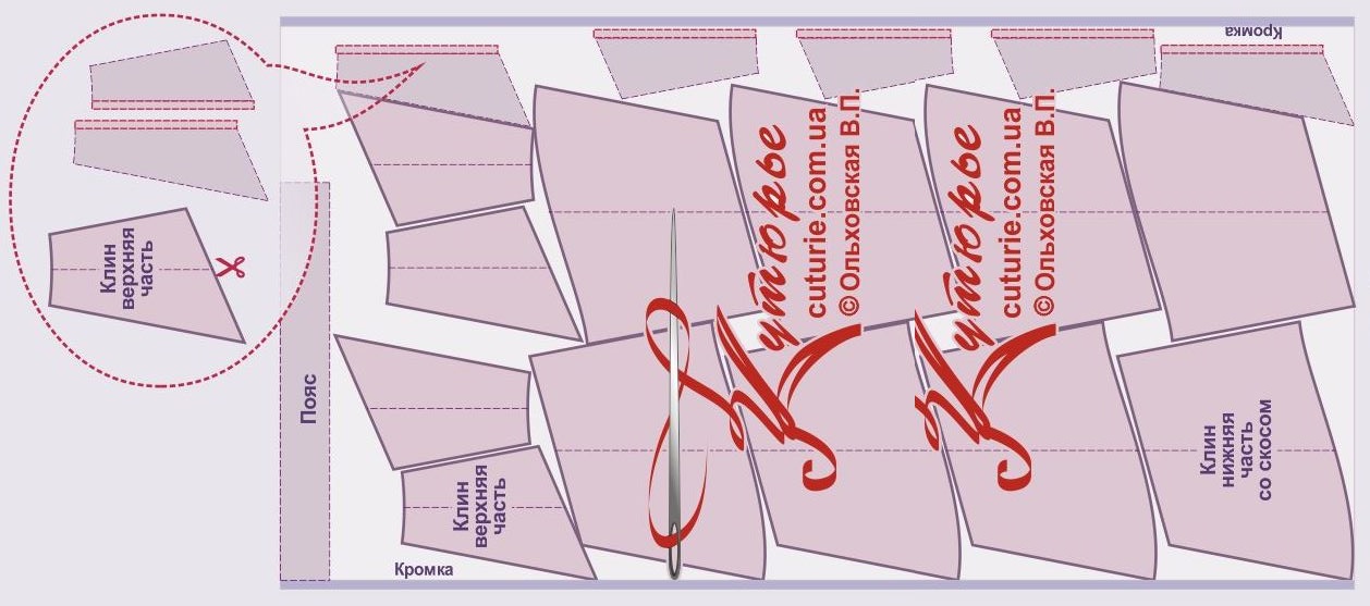 сумма ширины всех клиньев равна обхвату бёдер, но ширина каждого клина может меняться.