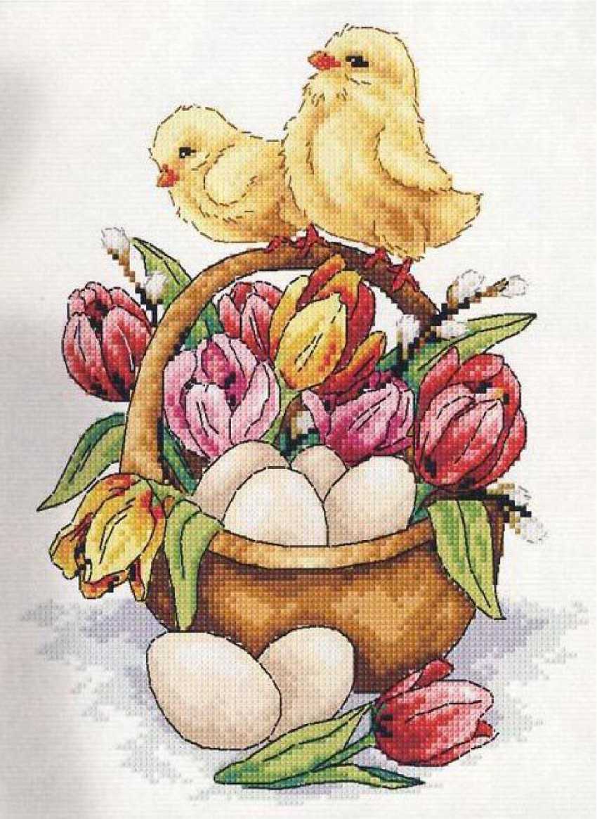 Вышитые к Пасхе открытки особенно понравятся вашим крестникам. Милые и яркие сюжеты с весенними цветами, крашеными яйцами и веселым утенком легко вышиваются и вносят в дом радость.