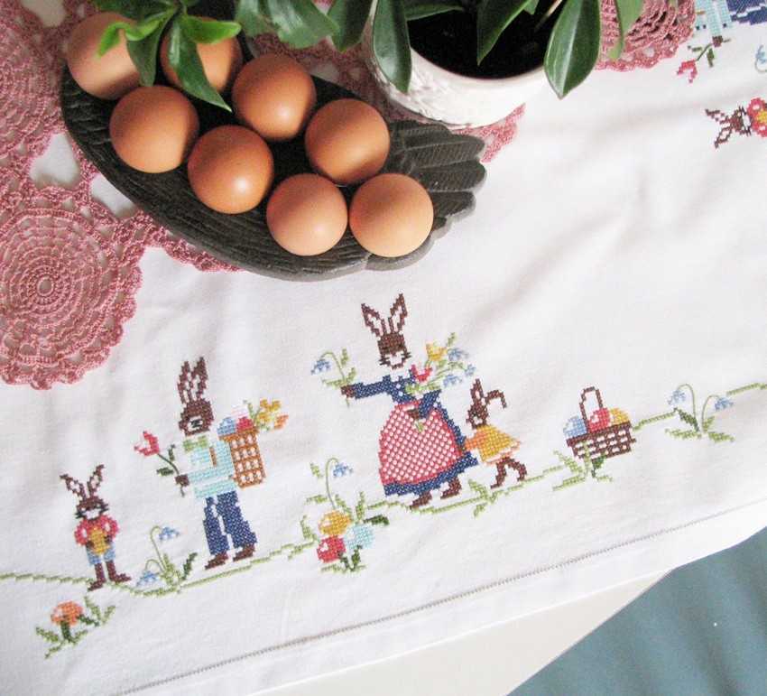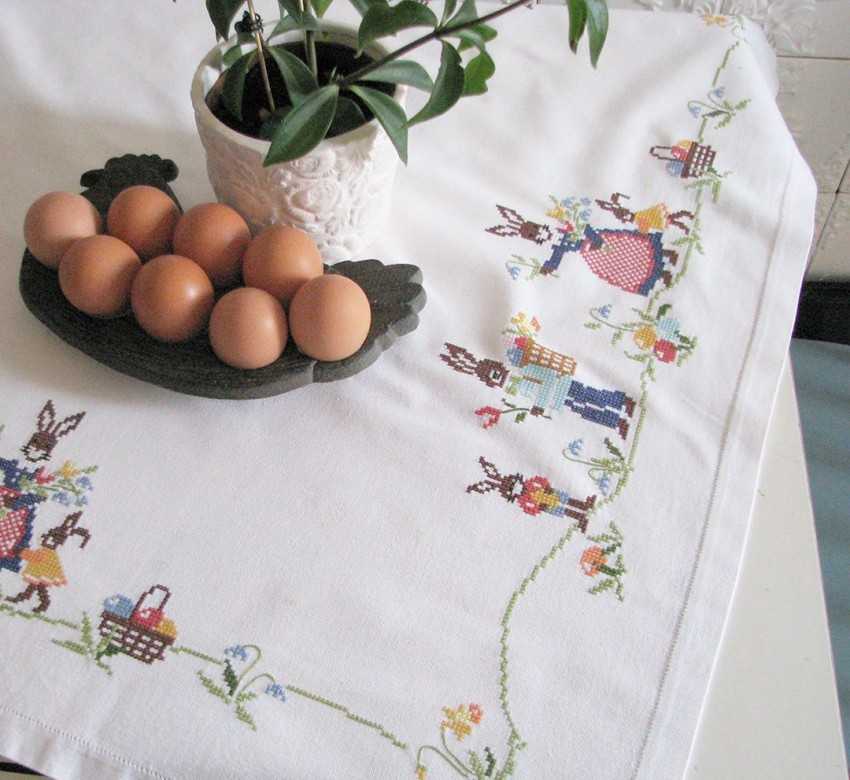 Интересным решением применения вышитых сюжетов станет их расположение (всех четырех) на наволочке к диванной подушке. В пасхальные деньки она будет весьма кстати. Проявите фантазию, и в вашем доме могут появиться милые пасхальные салфетки для яиц и куличей, декоративные прихватки, и многое – многое другое.