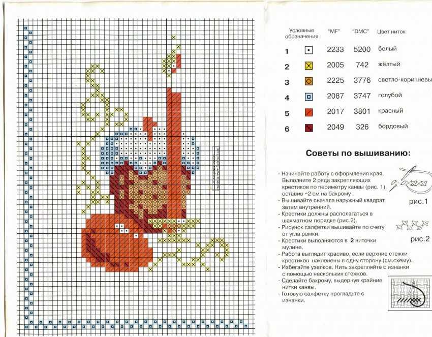 Второй вариант предполагает подсчет стежков, что затрудняет процесс вышивания.