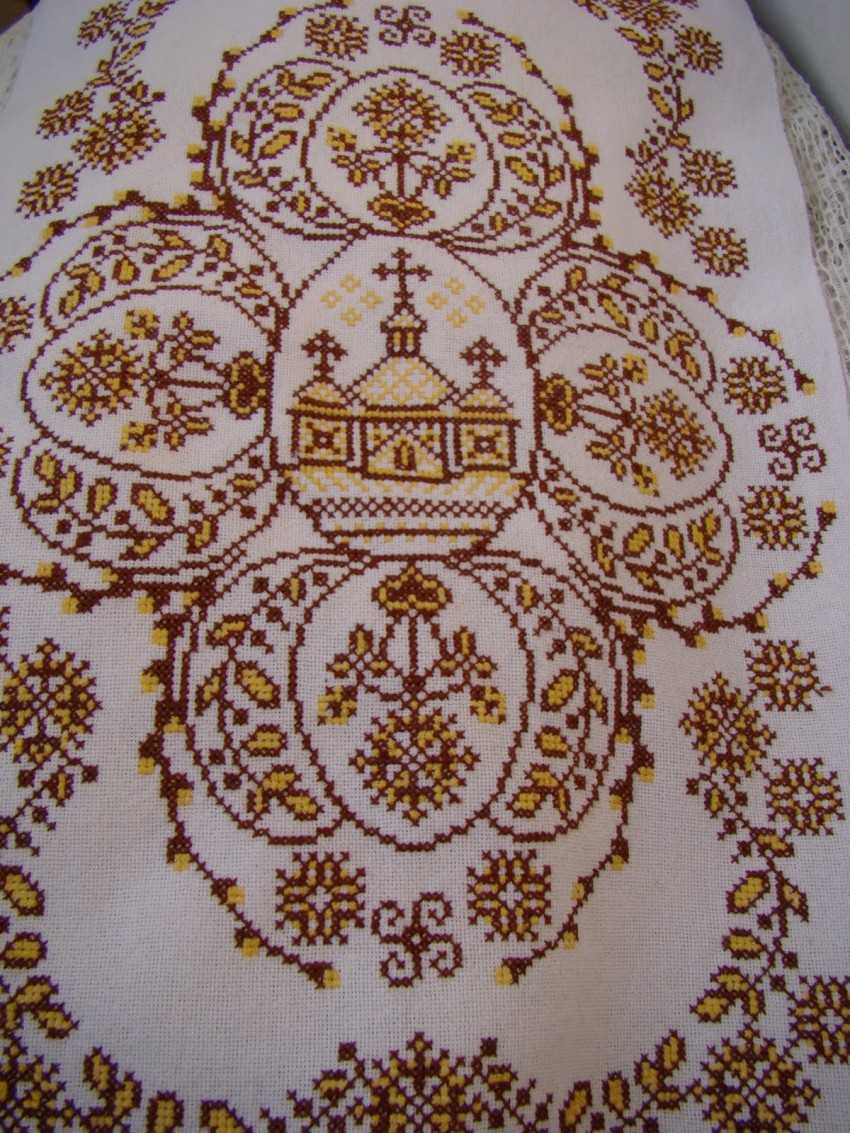 - Таким не сложным способом надо вышить всю схему. Пяльцы надо передвигать. После того как изделие закончено его надо пропарить утюгом с изнанки и обрезать все лишние нитки.