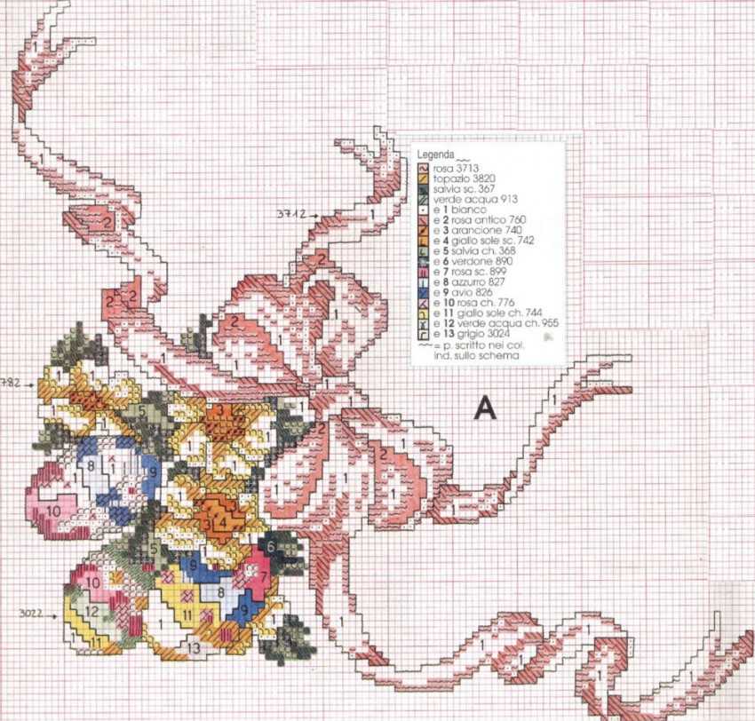 Букеты цветовОбратите внимание! Ткань складывают пополам, чтобы определить центральную точку будущего рисунка. Это поможет правильно расположить вышивку на канве