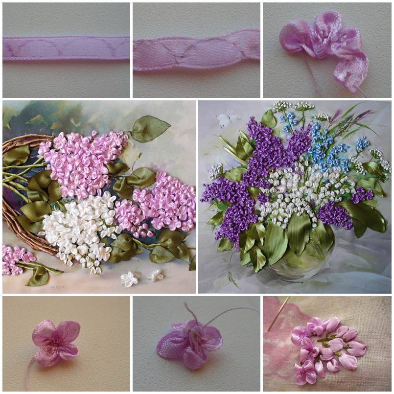 Вышивка лентами сирени – мастер-класс по созданию красивой картины