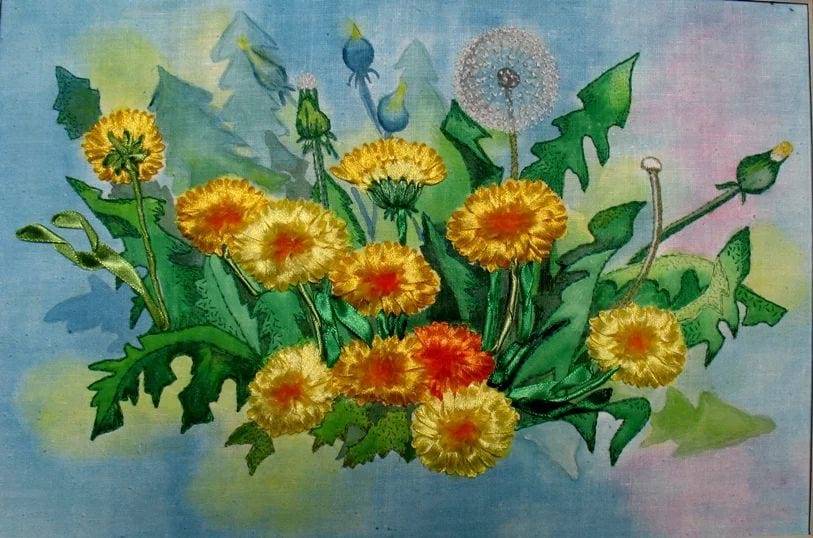 С шелковыми лентами удобно работать, ведь они очень легко проходят в ушко иглы и через ткань. Работы получаются легкими, воздушными и очень реалистичными.