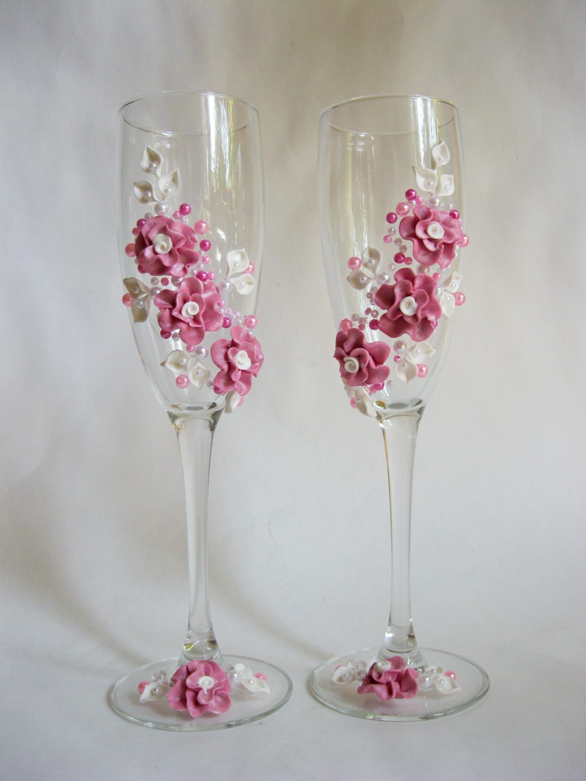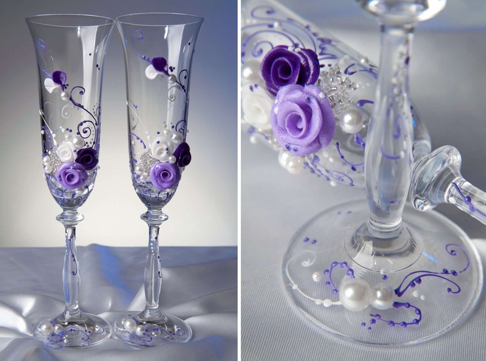 Существует множество способов украшения свадебных бокалов. Следует отметить, что это очень кропотливая работа, требующая терпения и аккуратности!