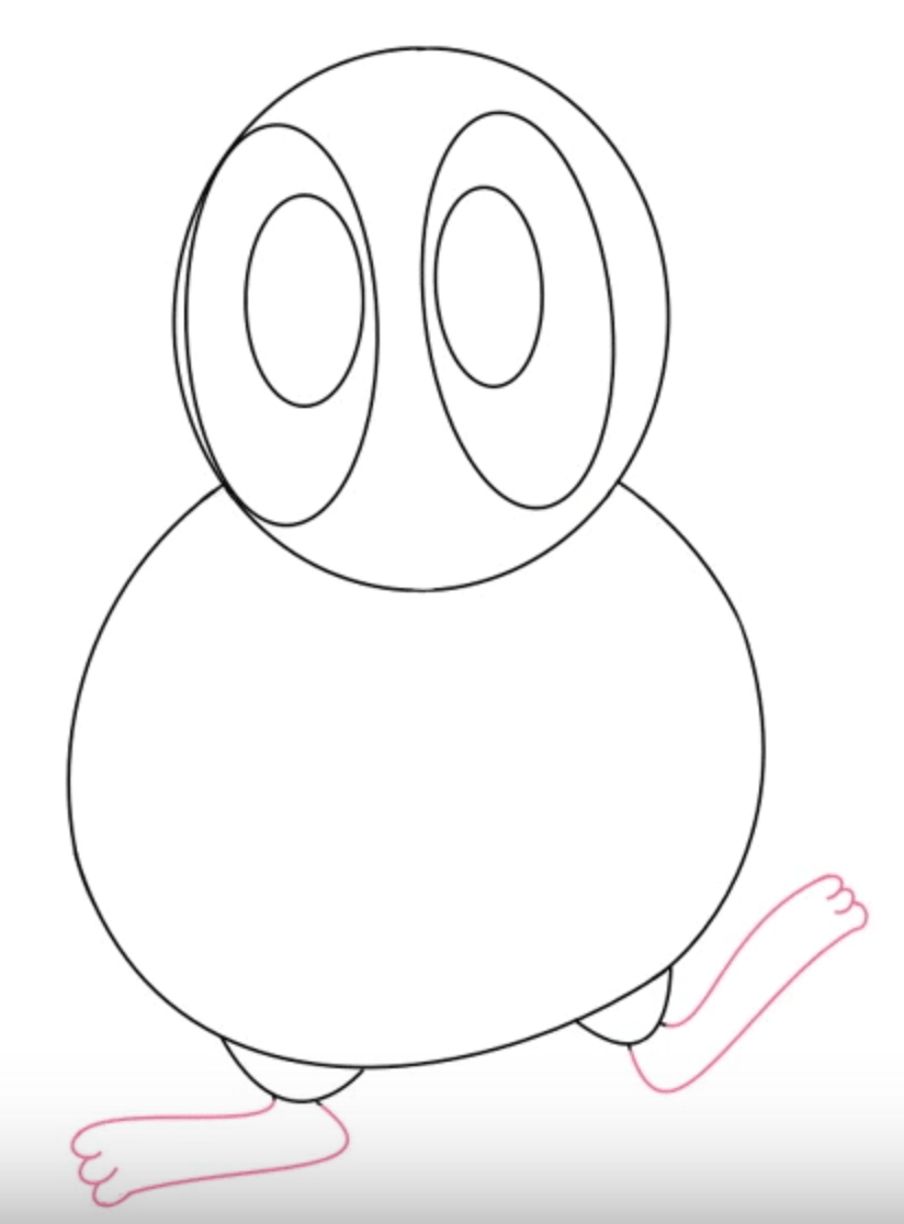 На листе бумаги изобразить карандашом вертикальную линию (ось), на которой симметрично расположить два круга – лицо и туловище птицы.