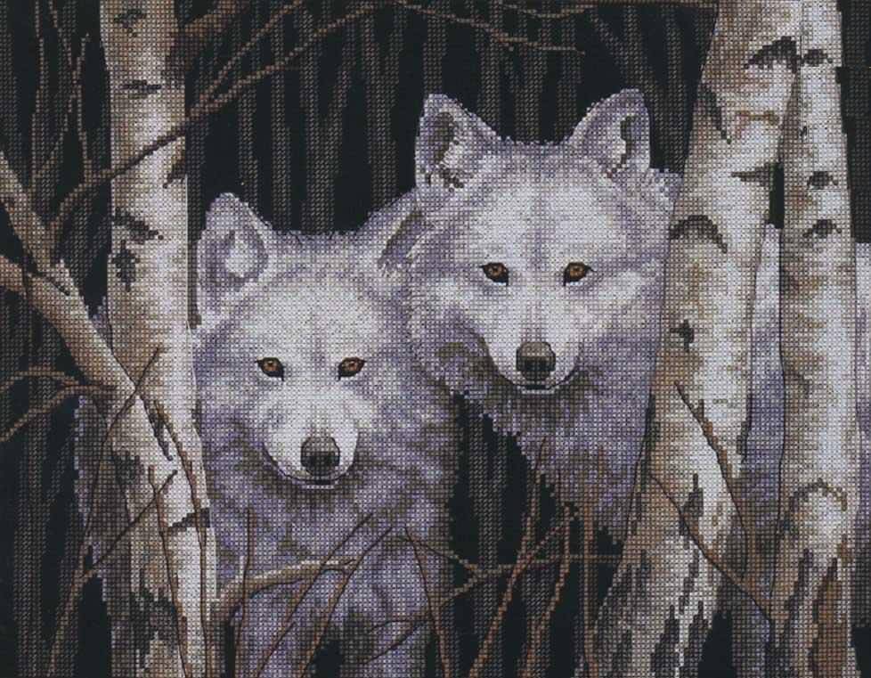 Вышивка крестом: волки-пара и волки-одиночки