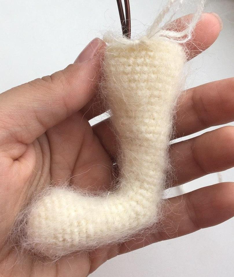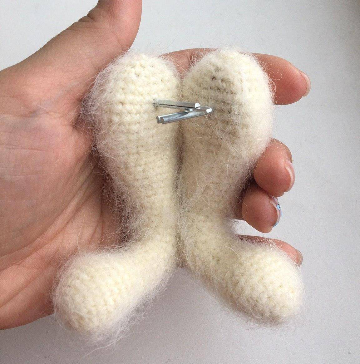 Повторите этот процесс для второй лапки зайчика. После того, как вы связали обе лапки, проверьте их форму и внешний вид. Если что-то не устраивает, можно внести корректировки, внимательно присматриваясь к схеме и фото готовой игрушки.