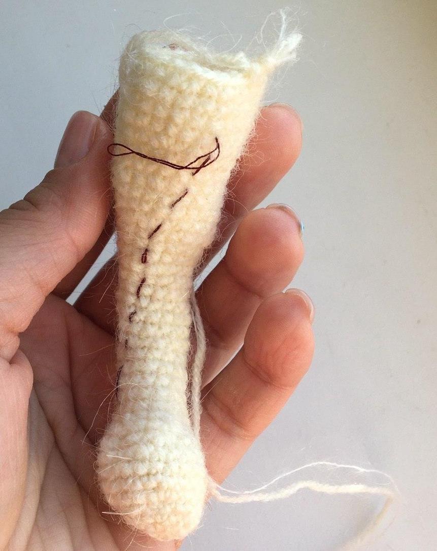 Обратите внимание на форму и закругленность верхней части лапок, которую можно достичь путем убывания петель, как и при вязании ушек. По мере уменьшения петель образуется закругленная форма, которая придаст рукодельной игрушке более естественный вид