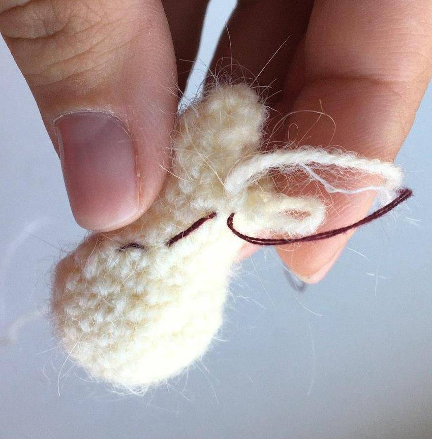 - Потом пришить ушки к основанию головы и закрепить глаза.