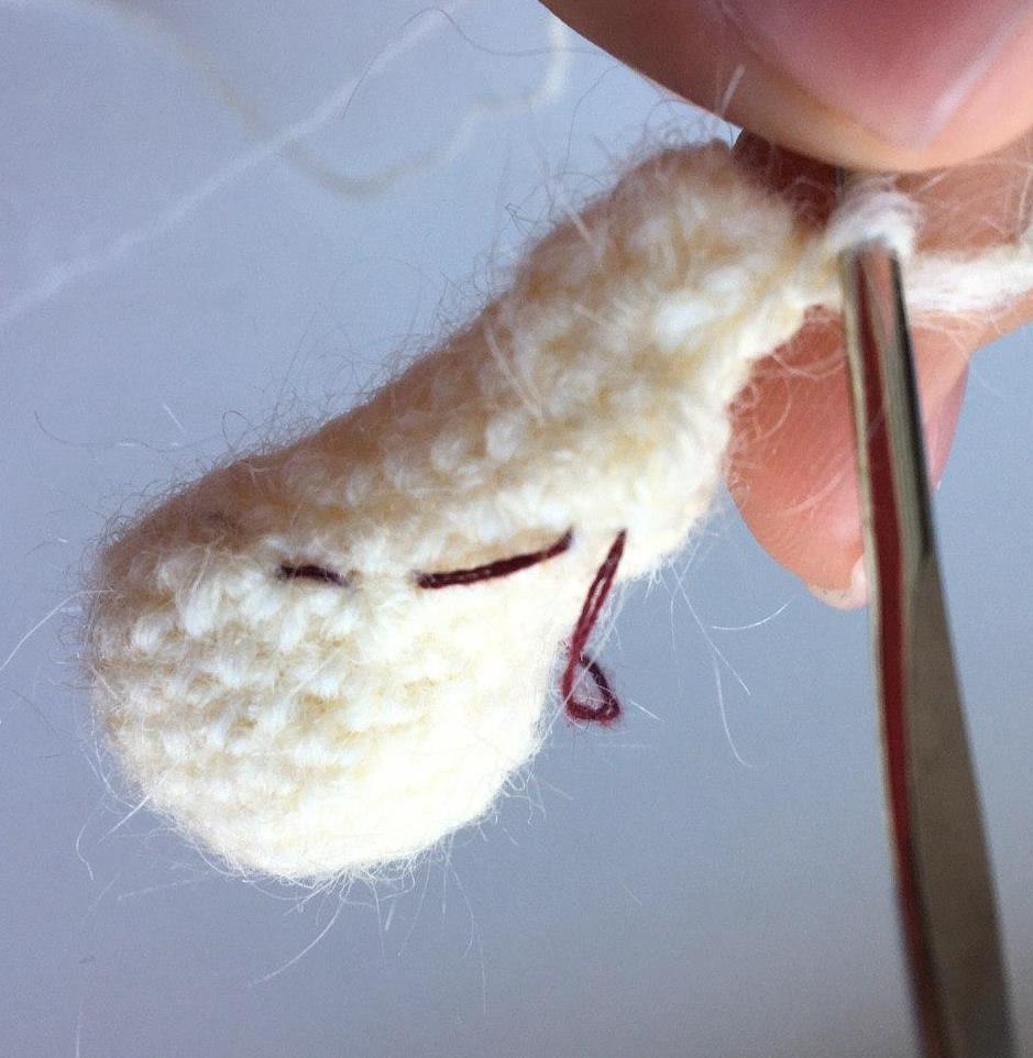 | Вышить носик и носогубную складку и пришить к голове ушки потайным швом | |