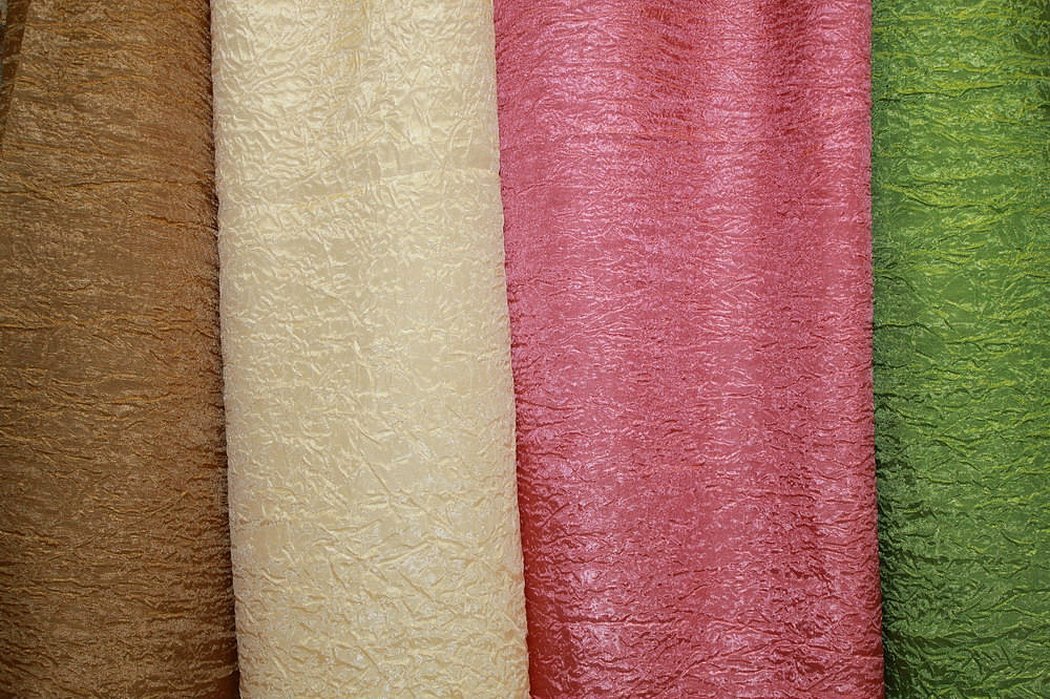Существует еще и портьерная жатка, из которой шью шторы и портьеры. Такой текстиль отличается прочностью, простотой в уходе и стабильностью рельефа. Для пошива штор не используются материалы креп жатка. Применяется только крэш, тергалет и кринкл.