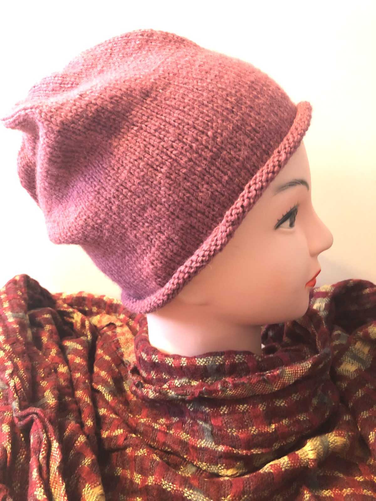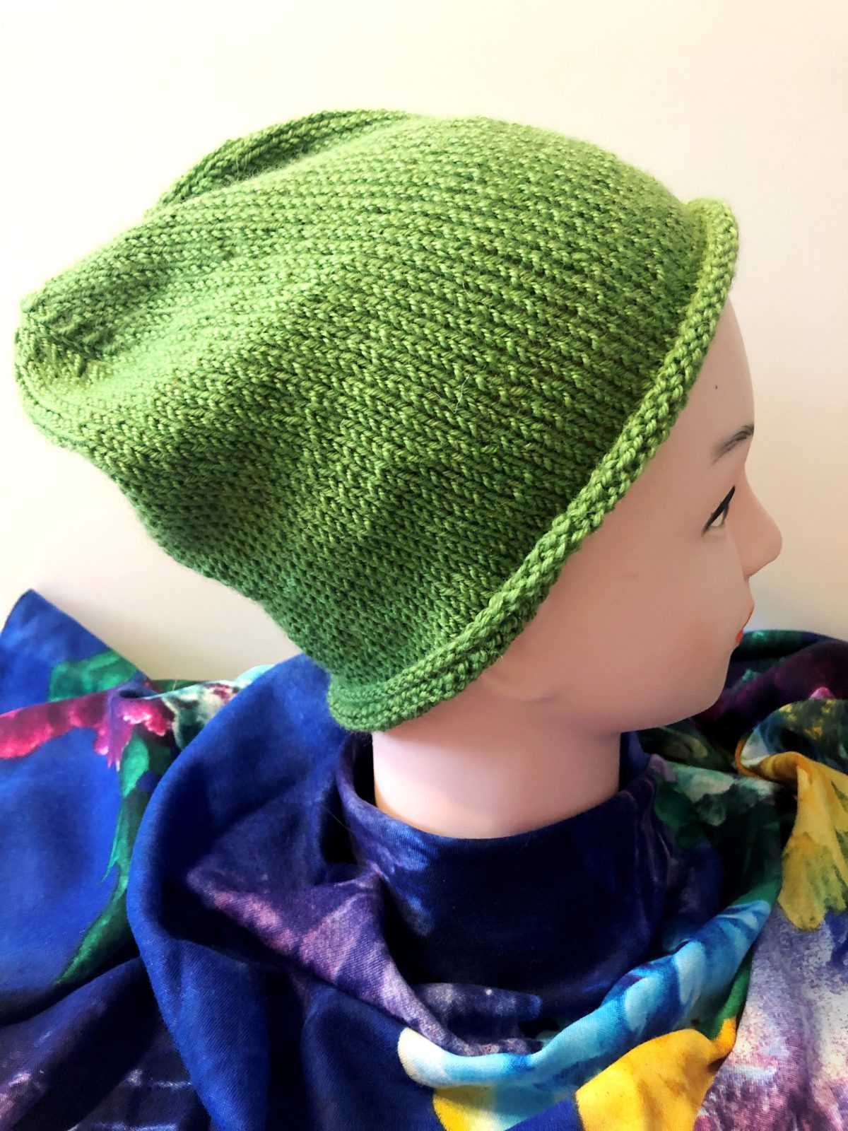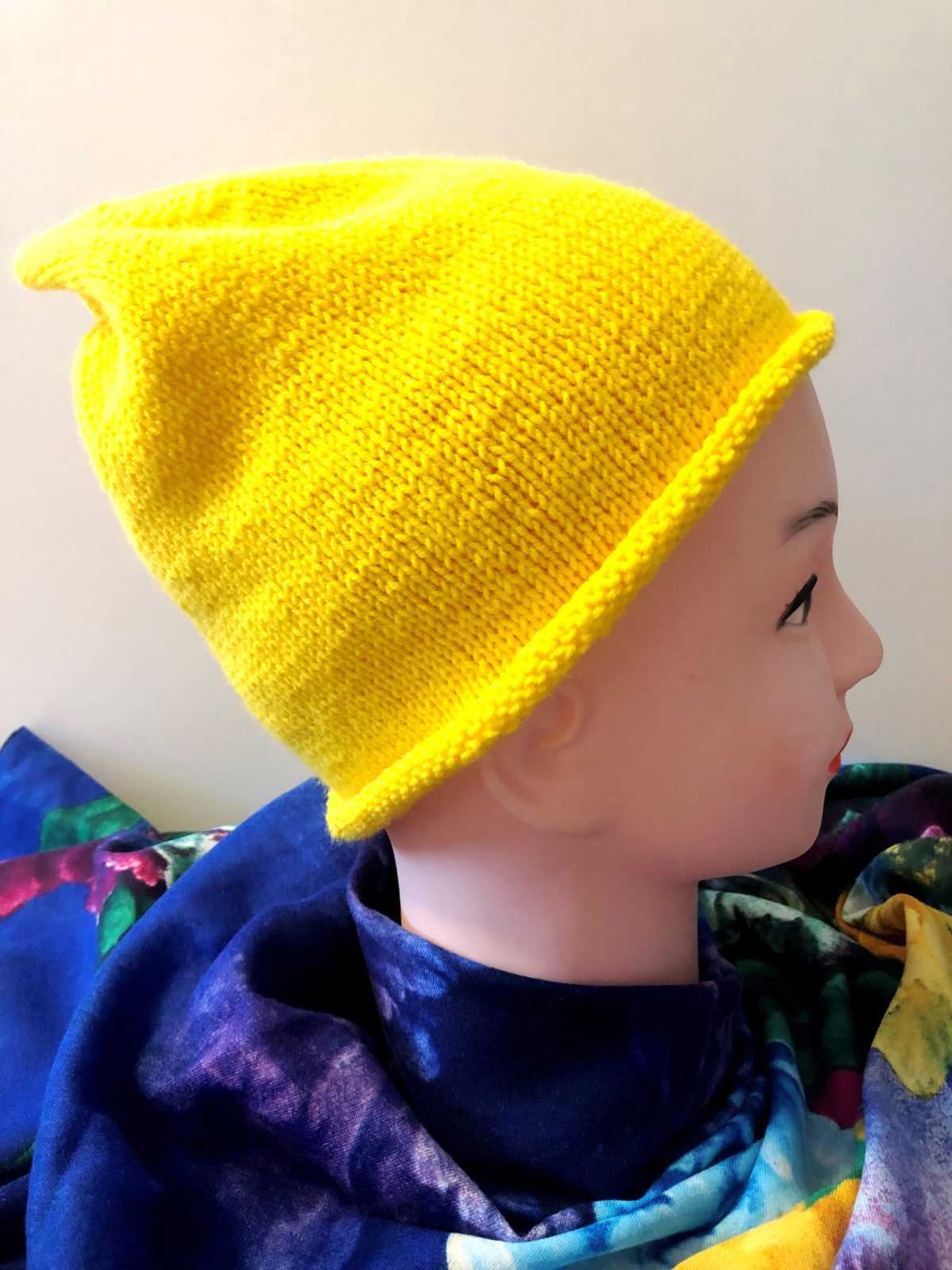 Такой вариант шапочки бини можно носить с отворотом и без него.