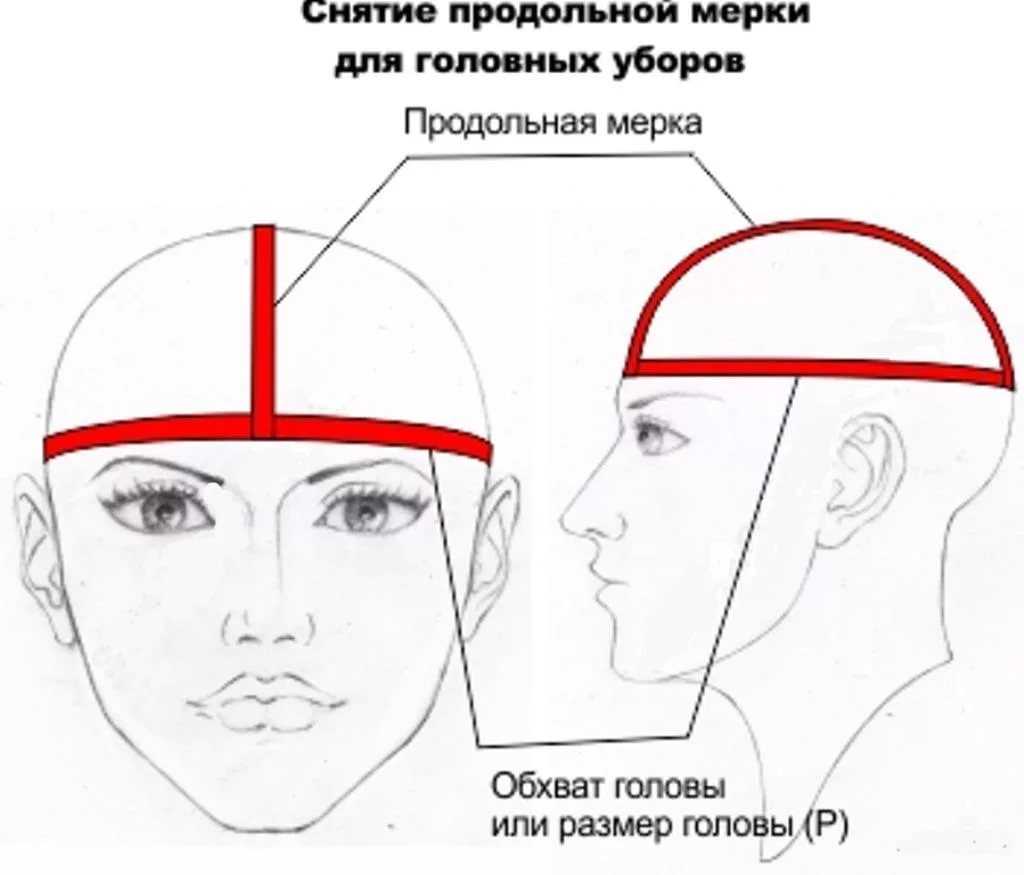 - Сантиметровой лентой (туго натянутой) измеряется окружность головы по самым выпуклым точкам: над бровями – ушами – затылку.