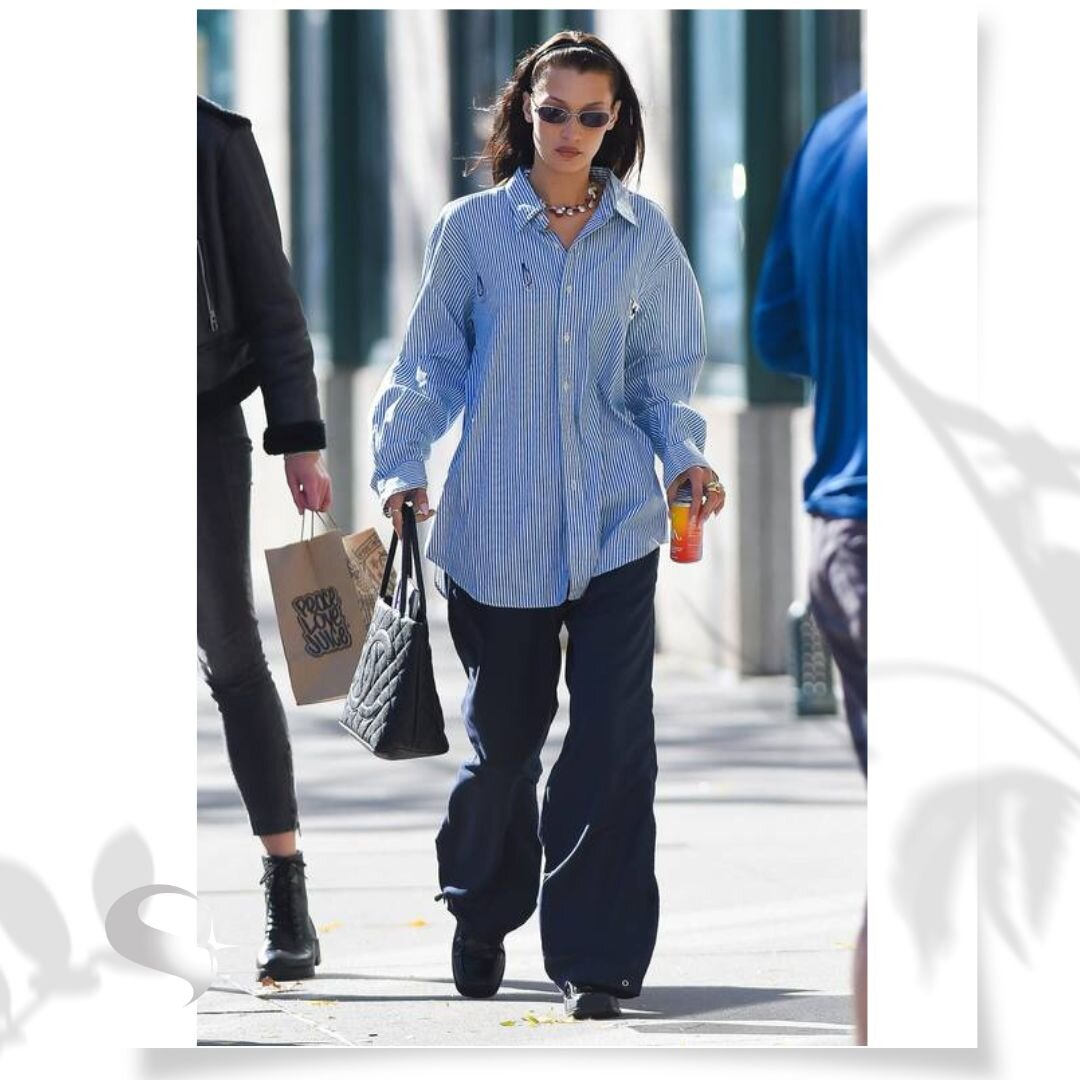 Примечание к стилю: Вы едва можете разглядеть лоферы под широкими брюками Беллы Хадид, но поверьте, они там есть.