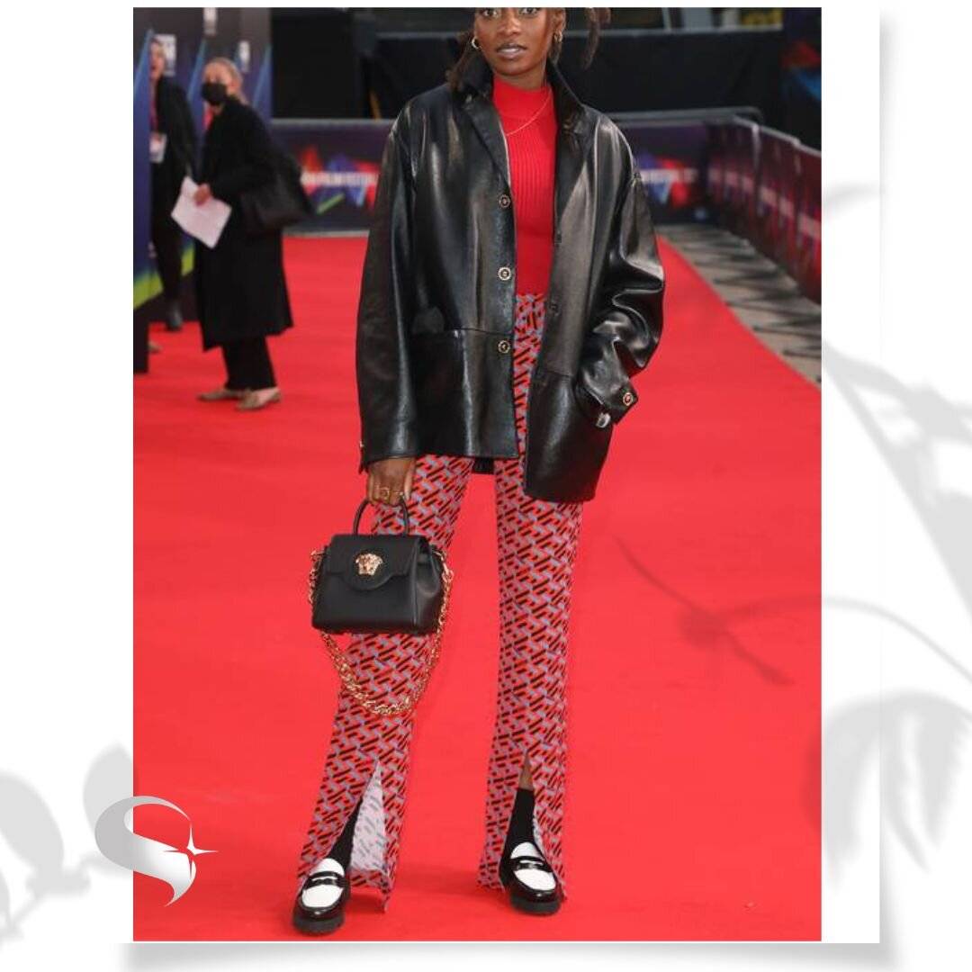 Примечание к стилю: Нам нравится, как разрезы на принтованных брюках Little Simz подчеркивают ее черные носки и монохромные лоферы — этот образ из 2021 года кажется таким же актуальным и сегодня.