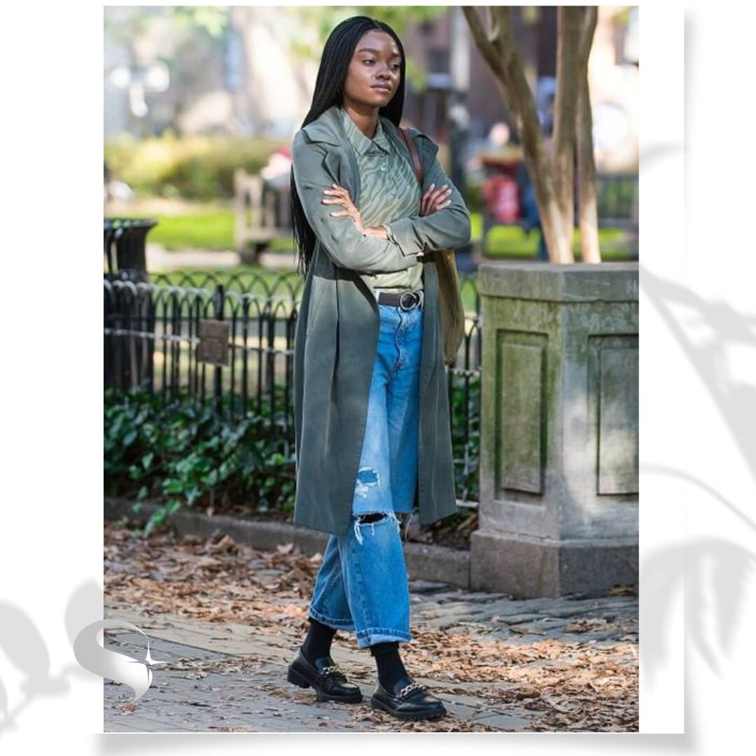 Примечание к стилю: Ханик Бест носит классический осенний образ, но нам очень нравятся ее лоферы, украшенные цепочками.
